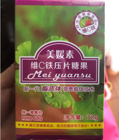 这个产品我好像在315查不到任何信息。产品名称:美媛素维C铁压片糖果;生产许可:SC10644011600058;条码:693849810355;委托方:内蒙古归元堂生物科技有限公司;被委托方:广州正广生物科技有限公司