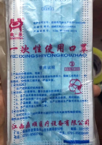 咨询一下我买到的口罩的真伪?鼎英一次性使用口罩。送人了,现在不在我手上,这是之前买时的图片。注册证编号:赣械注准20152640016;江西鼎顺医疗设备有限公司。