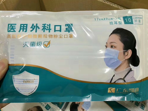 真假鉴别,这个口罩是真的吗?广东凯迪医用外科口罩。备案凭证编号:粤汕械备20200012号;生产厂家:广东凯迪服饰有限公司;条形码:6949335320022。