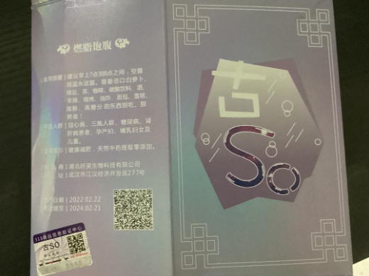 燃脂饱腹我看了扫码辨别真假?可是这个药盒上没有条码。食品生产许可证:SC11336098210351;生产厂家:湖北纤美生物科技有限公司。