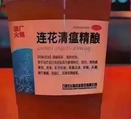 经查验,国家药品监督管理局没有批准名称为“连花清瘟精酿”的药品(国家药品监督管理局查询返回的结果),但上面图片显示的功能主治与连花清瘟颗粒/连花清瘟胶囊/连花清瘟片的一样。上述“连花清瘟精酿”可能是贴标的虚假产品,建议消费者不要购买和使用,治病请选择正规药品,不要盲目使用来路不明的“药品”。如果消费者发现上面这款“连花清瘟精酿”在售,请向当地市监局举报。