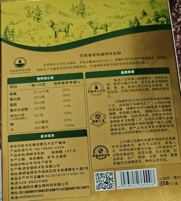 请确认是否是正规保健食品?天牧希有机高钙羊乳粉,6974812380008,SC20161011408179,西安御恭羊乳有限公司
