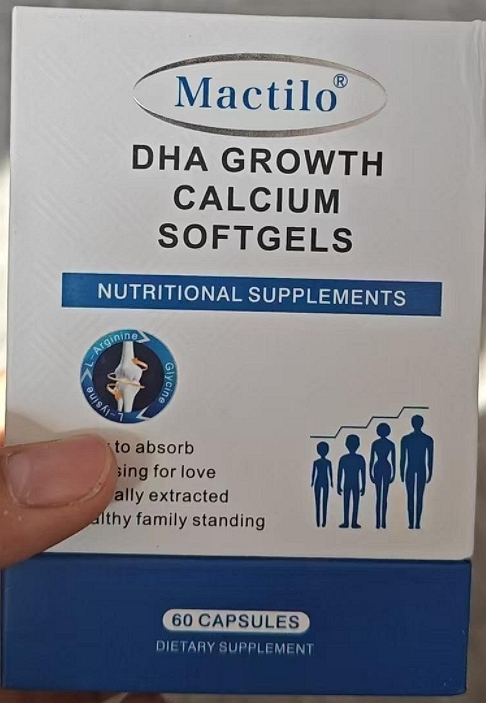 Mactilo DHA GROWTH CALCIUM SOFTGELS可能是国外的膳食补充剂,不是药品。国家药监局至今没有批准过任何用于“增高”的产品,任何产品宣传增高功能都涉嫌违法广告,请消费者不要轻信。