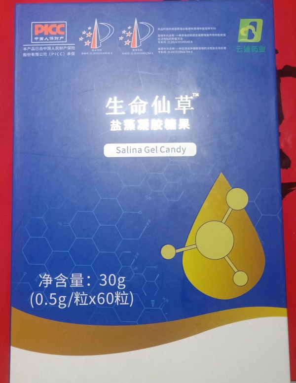 经查,没有名称为“生命仙草盐藻凝胶糖果”的药品或保健食品注册/备案,“SC10637069900096”是山东国和堂制药有限公司的食品生产许可证号,“生命仙草盐藻凝胶糖果”属于普通食品,既不是药品也不是保健食品,没有具体的保健功能或治疗功效,请消费者谨慎选择。