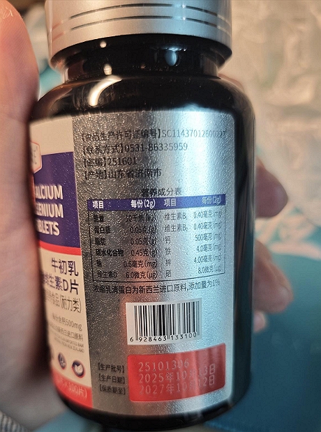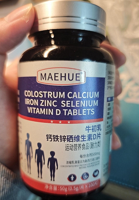 MAEHUE牛初乳钙铁锌硒维生素D片是真的吗?生产许可:SC11437012600227;条码:6928463133100。