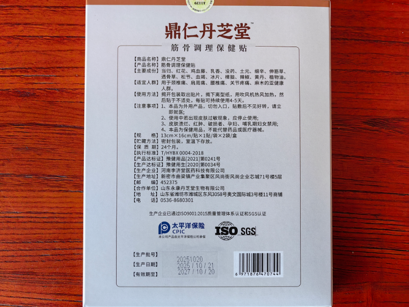 咨询鼎仁丹芝堂筋骨调理保健贴真伪?产品达标证:豫健用品(2021)第0241号;生产企业:河南李济堂医药科技有限公司;条形码:6971876470744。