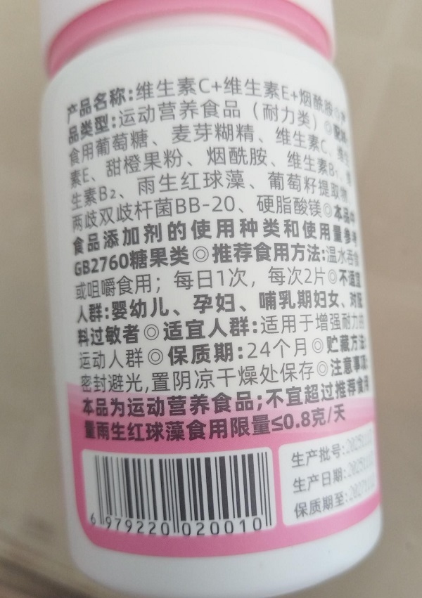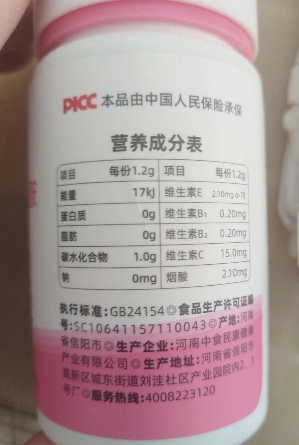 维生素C+维生素E+烟酰胺是正品吗?维生素C+维生素E+烟酰胺(仁养品),生产企业:河南中食民康健康产业有限公司,食品生产许可证编号:SC10641157110043,条形码:6979220020010。