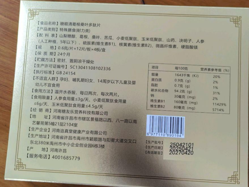 䅯顺清葛根桑叶多肽片有没有?生产许可证编号:SC13041108102336;生产企业:河南追真堂健康产业有限公司;条形码:6977110890194。