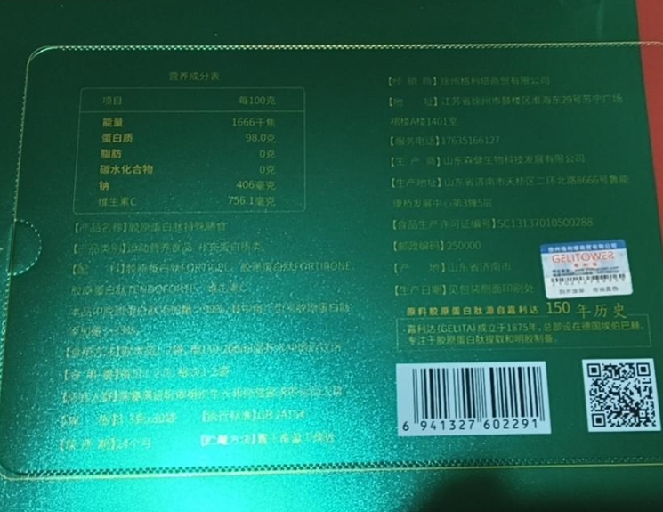这个胶原蛋白肽能帮助人体长出软骨吗?格利塔胶原蛋白肽能特殊膳食,6941327602291,SC13137010500288,山东森健生物科技发展有限公司