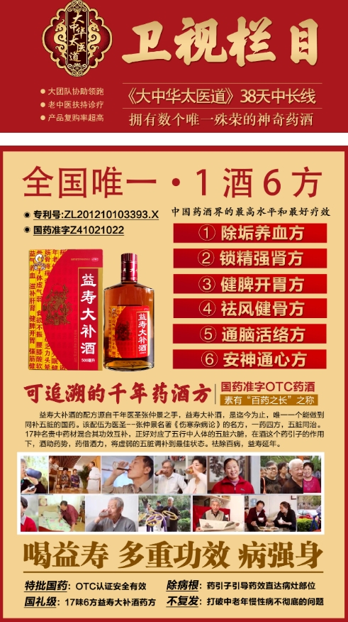《大中华太医道》栏目王永利推荐的益寿大补酒是真的吗?国药准字Z41021022