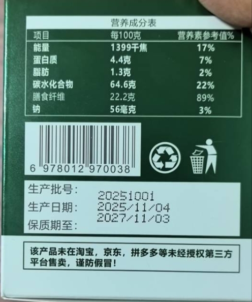 物码中心展示条码“6978012970038”的注册产品名称:复合纤维谷物冲调固体饮料,品牌名称:联合美康@,规格:200克(20克*10),发布企业:广州和信通贸易有限公司,条码的注册信息与上述“联合美康复合纤维谷物冲调固体饮料”包装照片信息一致。