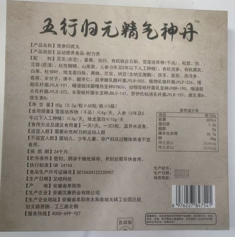 五行归元精气神丹茸参归芪丸是真的吗,SC10634122230907,安徽汉康药业有限公司,6976227847541