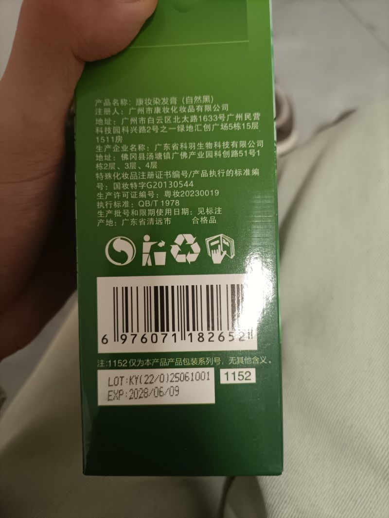 经查,广州市康妆化妆品有限公司的“康妆染发膏(自然黑)(国妆特字G20130544)”是经国家药监局注册的特殊用途化妆品,其注册信息如下:(国家药品监督管理局未组织对本产品所称功效进行审核,本注册证不作为对产品所称功效的认可)