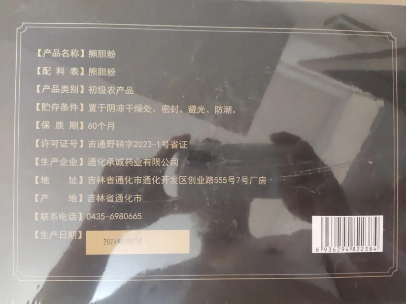 经查国家药监局数据库,通化承诚药业有限公司没有注册任何药品;“吉通野销字2023-1号省证”也不是药品的批准文号。上面包装显示产品类别:初级农产品。上述通化承诚药业有限公司生产的“熊胆粉”可能是作为初级农产品生产和销售,不是按正规药品标准生产,其产品质量难以保证,请消费者谨慎选择。提醒消费者治病选择正规药品,买药看准“国药准字”。