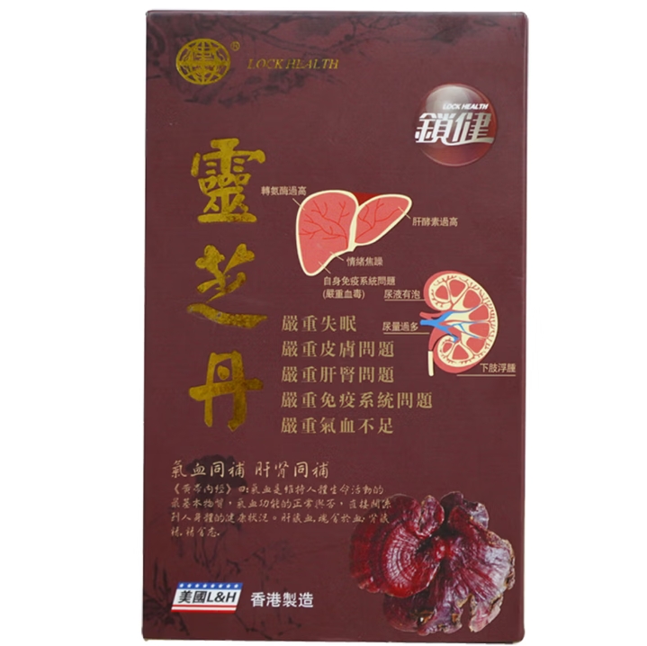 药品价格315网提醒您:部分网站展示“LOCK HEALTH锁健灵芝丹”的包装图片对其描述“灵芝丹采用顶级赤灵芝、人参、红花作为原料,利用美国现代生物精提技术精炼而成。补气活血、肝肾同补;快速调节肝肾失调,达致体内阴阳平衡,为你全方位保健提供最佳选择。严重失眠,严重皮肤问题,严重肝肾问题,严重免疫系统问题,严重气血不足”等内容宣称或暗示保健功能或治疗功效,涉嫌虚假宣传欺骗消费者,请消费者不要轻信。