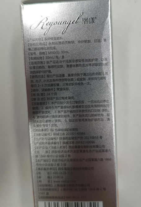 经查,“陕械注准20182140066”是西安惠普生物科技有限公司“医用修复敷料”的第二类医疗器械注册证编号,该产品适用于浅表非感染性创面护理,以及轻度日晒伤、敏感性皮肤、激素依赖性皮炎等屏障受损皮肤的保护与护理。“瑞漾”是该产品在包装上使用的商标。