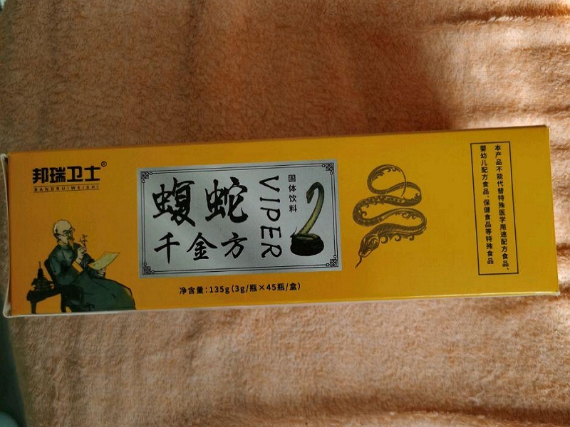 根据产品包装照片,未发现“邦瑞卫士蝮蛇千金方固体饮料”存在异常,该产品属于普通食品。