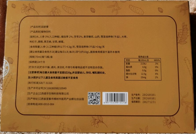 邦瑞卫士延龄膏是真的吗?条码6971443915418,生产企业:江西诺华生物科技有限公司,许可证:SC10636098210949。