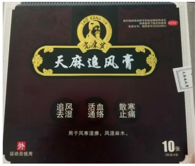 经查,贵阳济仁堂药业有限公司“天麻追风膏(国药准字Z52020001)”是经国家药品监督管理局注册的药品,其功能主治:追风祛湿,活血通络,散寒止痛。用于风寒湿痹所致的腰腿酸痛、麻木。用法用量:生姜搽净患处或穴位,将本品加温软化,贴于患处或穴位。“老康家”是该产品在包装上使用的商标。建议消费者治病不要轻信广告。
