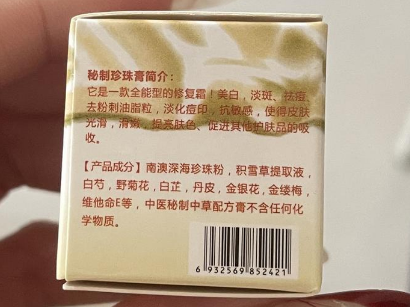 MAKEUPPEARL CREAM素颜珍珠膏这个素颜珍珠膏有注册的吗?生产商:广东汕头市南澳县素颜家族化妆品有限公司;条形码:6932569852421。