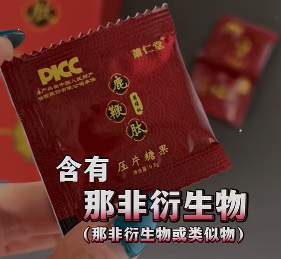王海测评视频称萧仁堂鹿鞭肽压片糖果检测含有那非衍生物。SC11344040400321,珠海市聚富康食品有限公司
