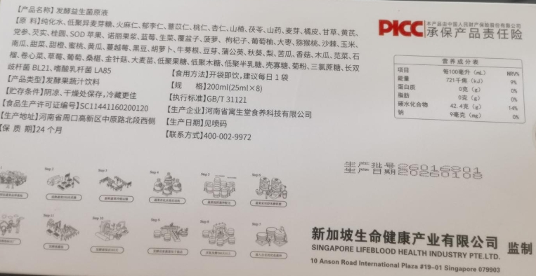新航医药轻常顺发酵益生菌原液,这个是真吗?名称:发酵益生菌原液;生产企业:河南省寓生堂食养科技有限公司;条形码:6970677494959;食品生产许可证编号:SC11441160200120;执行标准:GB/T31121。