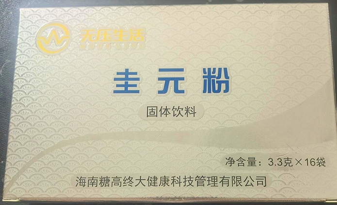 经查,没有名称为“无压生活圭元粉固体饮料”的药品或保健食品注册(备案),“无压生活圭元粉固体饮料”既不是药品也不是保健食品,没有具体的保健功能或治疗功效,请消费者谨慎选择。